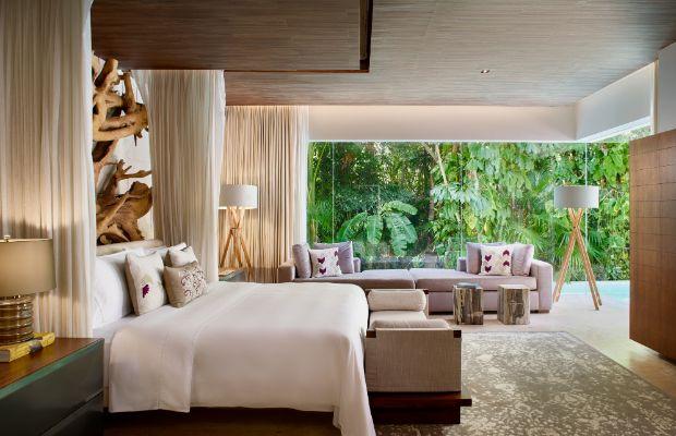 What about the rooms? In one of the 40 beautifully appointed spaces that make up this cluster of wellness-inspired luxury. Options range from one to three bedrooms, with the jewel in the crown – the Royal Villa – featuring striking architecture, a spacious terrace with pool and a private cinema. Even the one-bedroom Casitas have their own pools, al-fresco living rooms with hammocks and outdoor moon showers.