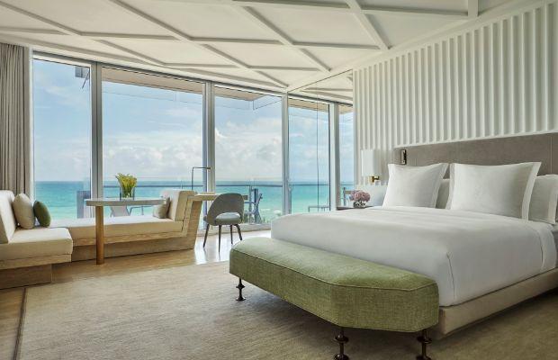 What about the rooms: More than just a hotel, the project combines 121 private residences along with 30 hotel residences and 77 hotel guest rooms. The original 1930 Mediterranean–style building was reconceived by architect Richard Meier in a sleek contemporary style, made warm and personable thanks to the interiors by French interior designer Joseph Dirand. Choose from standard rooms with floor-to-ceiling windows and ocean views, or check into an expansive hotel-managed residence, complete with full kitchen and open living space.