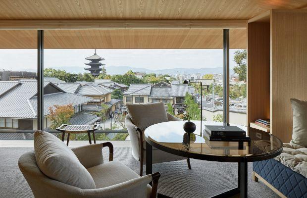 Choose your view: With only a few floors above ground level, the hotel nonetheless has maximised its location. Guests can choose between sweeping views over Kyoto’s tiled rooftops to Yasaka Pagoda, or a private, peaceful terrace bordering a manicured Zen garden.