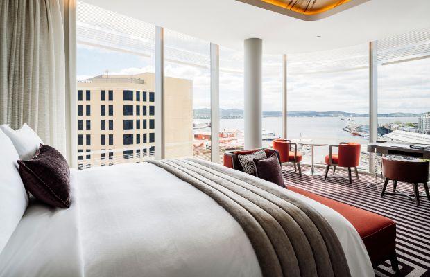 Give me the lowdown: The only Australian outpost of Marriot’s Luxury Collection brand, The Tasman is a magical jigsaw puzzle of a hotel crafted from three buildings, cleverly and seamlessly blending Georgian, Art Deco and modern architectural styles. Each of the buildings’ distinct eras are reflected in The Tasman’s 152 rooms and suites – from dark and moody high-ceilinged rooms complete with working fireplaces to glam Art Deco curves and light-filled angular glass and steel boxes with spectacular views over Sullivans Cove. What binds this eccentric collection of styles together is an uncompromising attention to detail, a sense of relaxed luxury and a uniquely Tasmanian style and pace.