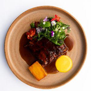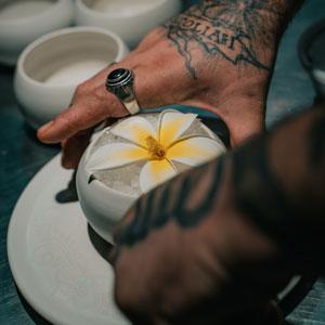 Dishes here celebrate the best of Guatemalan produce, looking to the country's history and traditional recipes for inspiration. Take the heirloom tomato dish, a consistent feature of Ana's menu since its days as a pop-up: after finding a producer in Antigua Guatemala who grows organic heirloom tomatoes, Solanilla built a dish that also incorporates sal negra, a traditional black salt from the country's Quiché region, sourced from Guatemala's last black salt artisan. This early dish helped Solanilla to clarify his vision for the food at Ana, and he continues to experiment with local ingredients, such as the loroco, a Central American climbing vine with edible flowers.