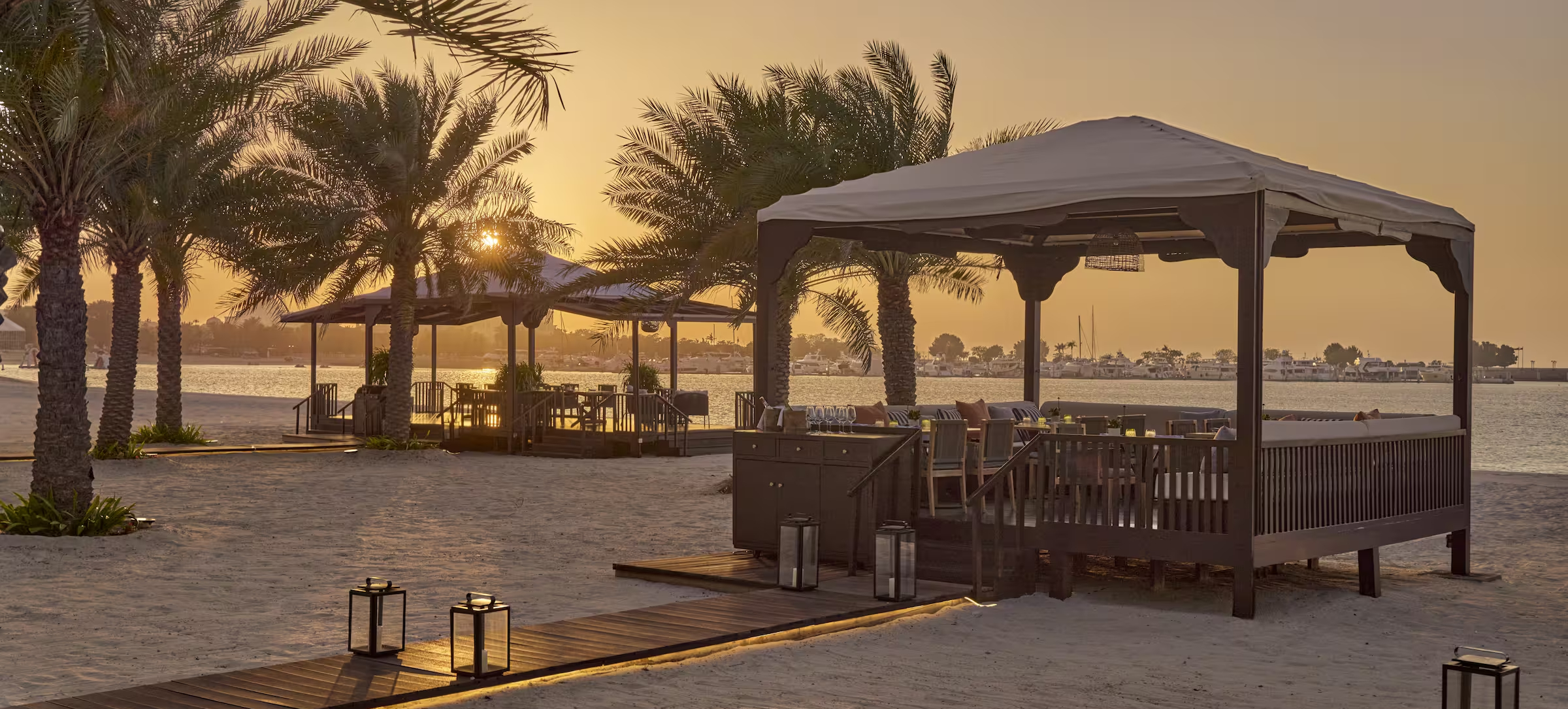 The menu is replete with raw, smoked, and charred seafood, unique meat cuts and grilled skewers. Live DJ music echoes throughout the deck as yachts cruise the waters and plates of thinly sliced crudos accompany cocktails coming from behind the bar. This stylish venue sits directly on the sands and is an ideal gathering spot for lively brunches and large parties with its boho-chic ambiance.