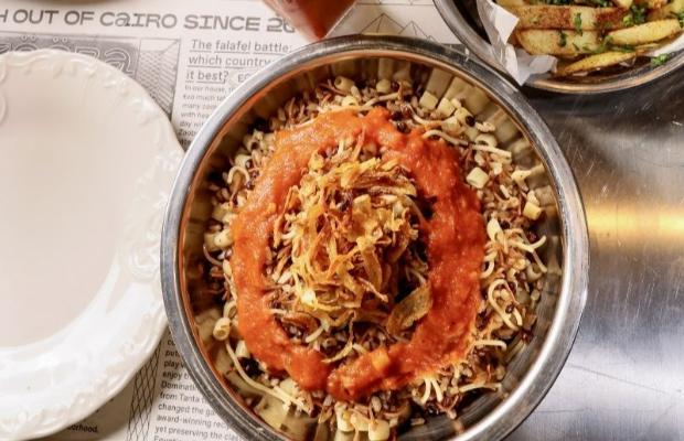 The menu: Expect all the hallmark Egyptian dishes served in homes across the country and by the vendors that line the roads and markets of the capital. Zooba’s take on the country’s national dish, koshari, brings the blend of rice and short pasta simmered with brown lentils in a spiced tomato sauce, topped with dukkah and fried onions, to new dimensions. Its pockets of taameya, Egypt’s falafel variation made with fava beans, topped with heaps of fresh and zingy salad and drizzled in tahini sauce, are a must-order.