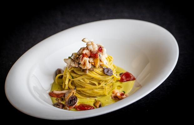 On the menu: Chefs Alajmo and Barni bring Venetian influences to the table, serving classics such as Cappucino Majorelle with squid ink and potato purée; crispy, smoked ricotta and mozzarella cannelloni with beef amatriciana sauce; and beef cheek marinated in red wine with celeriac purée . A favourite on the menu is the charcoal lobster with hummus and orange.