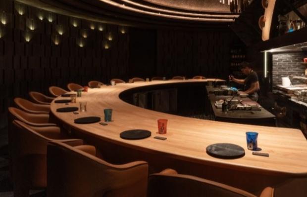 Sister space: Already dominant in Madrid's dining scene, globally renowned chef Dani García brought his Smoked Room concept to Dubai in January 2024. Located on The Palm Jumeirah in the St. Regis Gardens dining hub, Smoked Room Dubai follows in the footsteps of its Madrid counterpart in terms of concept and quality. A restaurant within a restaurant, the space is located towards the back of fire-forward steakhouse, Leña. Set in a dark, atmospheric room comprising 14 seats arranged around a semicircular counter, guests look directly into the kitchen consisting mainly of grills placed over an open fire.