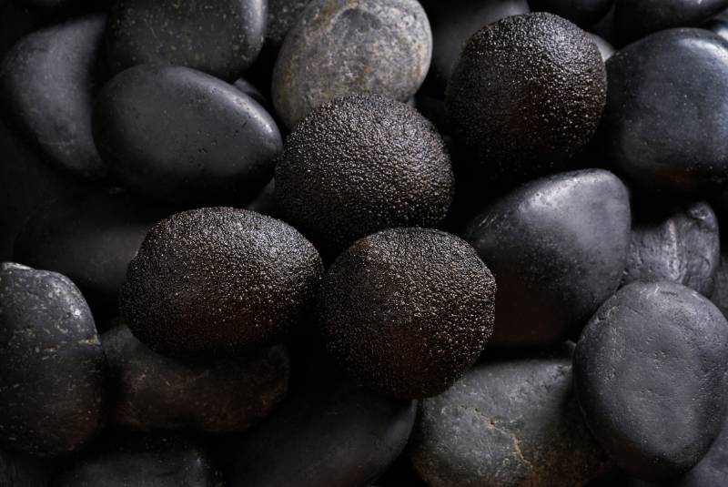 "This little stone inspired many, many years of snacks," says Tsumura, referring to the black rocks made with potatoes and activated carbon, stuffed with smoked Amazonian chorizo and served cold. "People would ask for 10 of them – they're the best munchies!"