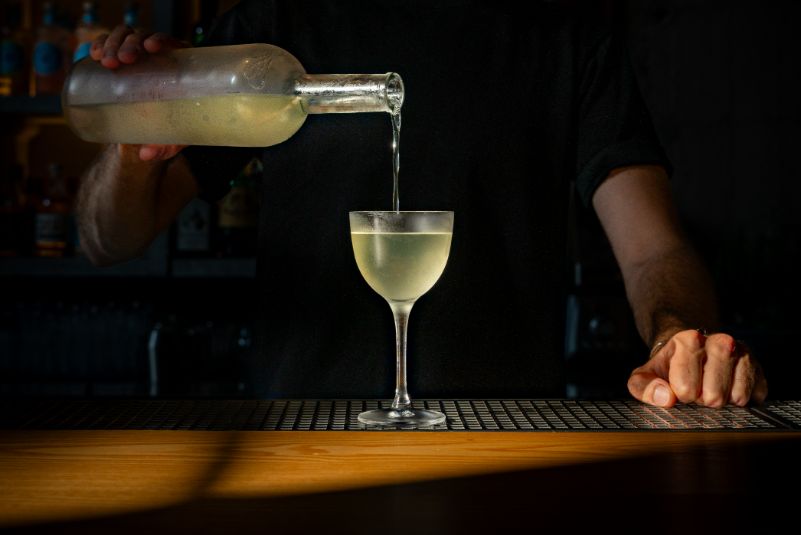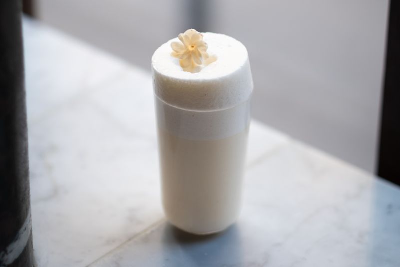This clarified milk punch combines homemade sweet vernal grass liqueur, vodka and an apple-based sour mix, clarified with ‘good cream’ sourced from top artisanal producers. The result is a smooth, translucent drink where each ingredient’s character shines.