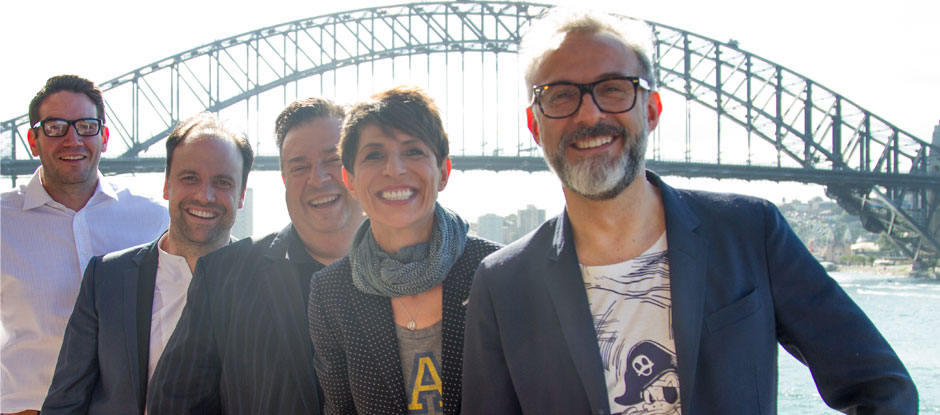 Header image: San Pellegrino Young Chef 2016 winner Mitch Lienhard, Brett Graham, Peter Gilmore, Dominique Crenn and Massimo Bottura at Sydney Opera House