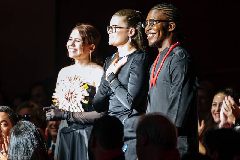 The three finalists of the 50 Best Restaurants Scholarship 2025 at The World's 50 Best Restaurants 2025 awards ceremony: Angélica Ortiz, Eva Stepak-Heritier and Christian Nwabunike