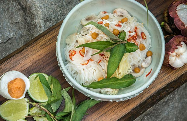Rice noodles with mangosteen and coconut cream at Bo.Lan