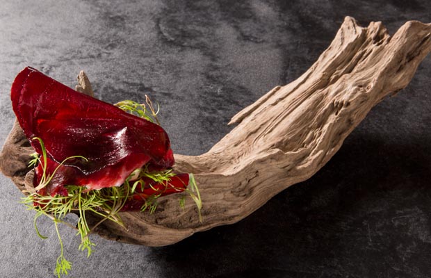 Maple-cured rainbow trout with heirloom beetroot at Jaan