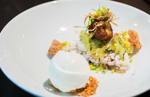 Khao Chae pork and shrimp pate, pickled radish and jasmine ice cream at Le Du