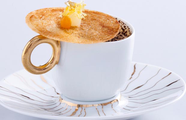 Goose foie gras royal, coffee, lemon and marsala wine at Le Moût