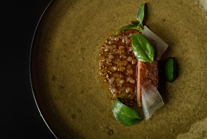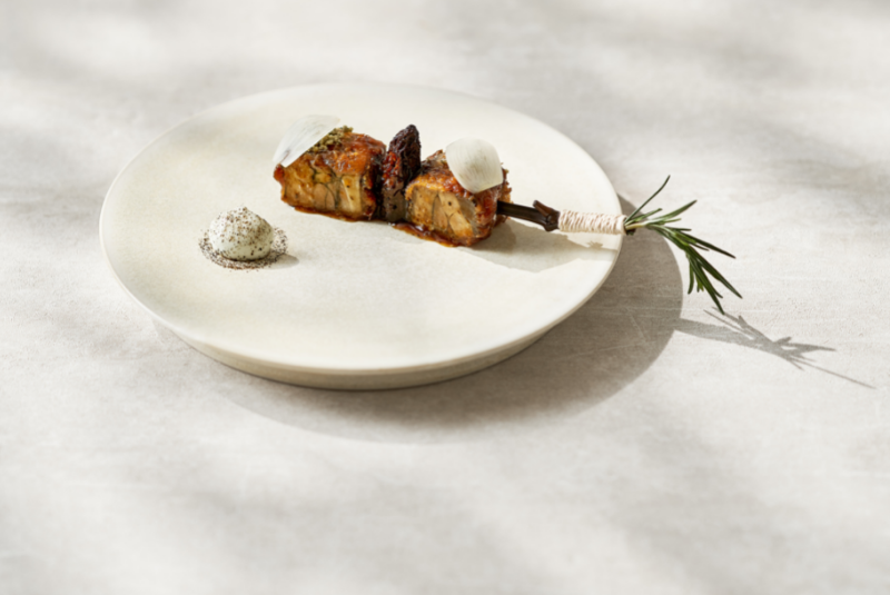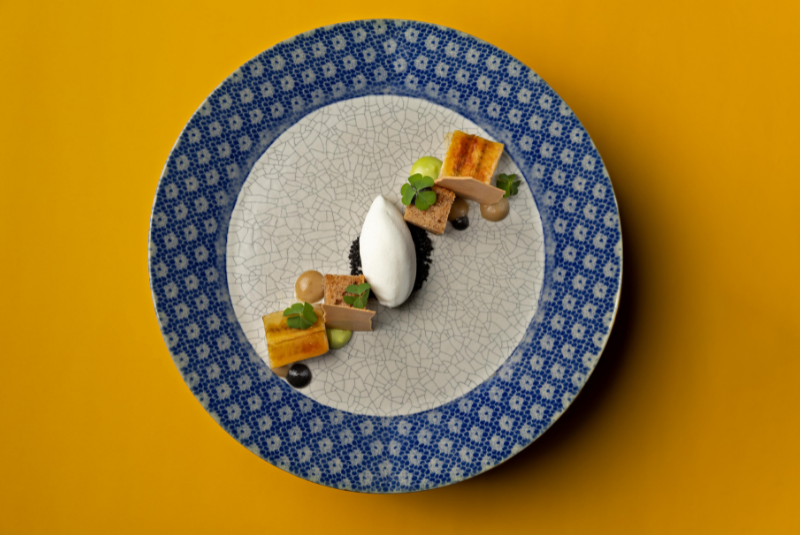 Chef Yusuke Takada hails from subtropical Amami Oshima, a small island in the far south of Japan, and still returns to his roots in search of inspiration and ingredients. His signature dish is Boudin Dog, a boudin noir in dough, coloured black with edible bamboo charcoal.