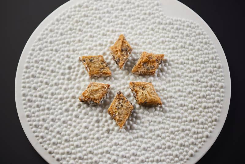 A cohesively designed experience that is at once nostalgic and ingenious, the menu at Ling Long weaves through inventive dishes such as ultra-crisp fried tung feng chicken, served with preserved vegetables, or the signature fish maw with parmesan, where the bouncy maw arrives in a complex broth, topped with a crisp and umami-rich cheese wafer. Meals finish with a showcase of Chinese honey through the Bees and Butterflies Playing in Spring course, made with a combination of fruity varietals and fermented sour honey from numerous local bee species.