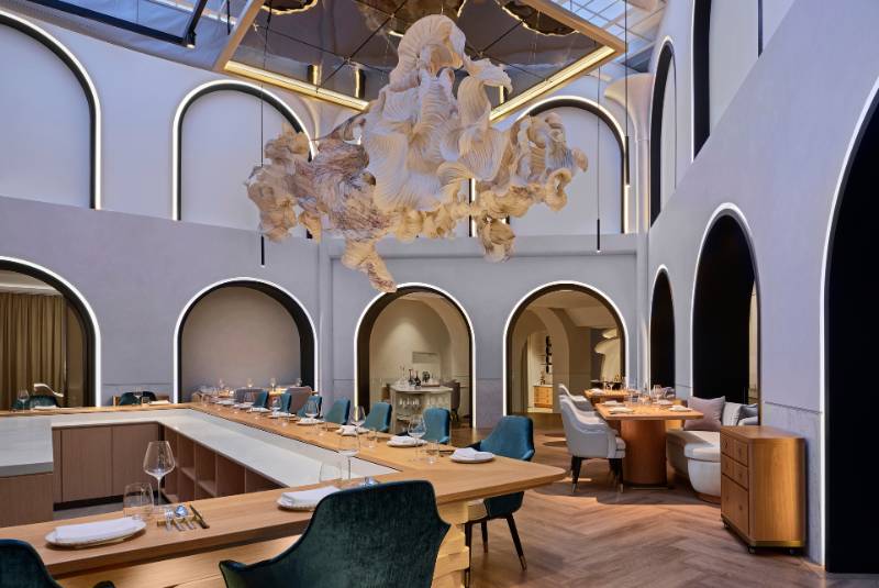 At Naples-born Chef Antimo Maria Merone's Estro, it's all about flowing lines, serene autumnal tones and Italian produce made with the very best seasonal ingredients. Tables are a white linen affair, but primary colours pop up via murals and eccentric patterned wallpapers to give the space unique character. Its style of service follows suit, offering classic, attentive hospitality while aptly avoiding any pretentiousness.
