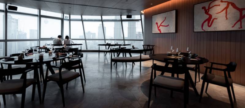 A portmanteau of the Malay words for 'god' and 'food', Dewakan's mission is to honour the bounty and blessing given to the land. Chef Darren Teoh uses his dishes to express a deep connection to the Indigenous people of Malaysia, while applying a modern twist. The restaurant is located on the 48th floor of Naza Tower, offering a spectacular view over the heart of Kuala Lumpur. Floor-to-ceiling windows allow the light to stream in, adding to the bright and luxurious atmosphere of the dining room.