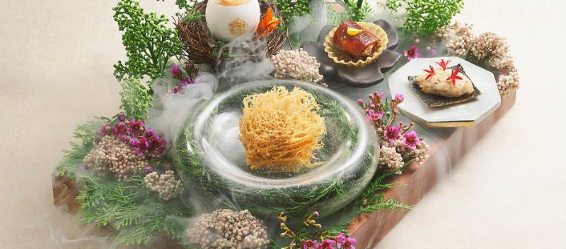 On Level five of the Parkroyal Collection Marina Bay hotel, the dining room of Peach Blossoms is a serene, nature-inspired sanctuary offering spectacular views out across the bay and of the Singapore skyline. A seven-course set menu is available at lunch alongside the lunch and dinner a la carte offerings, all of them overseen by executive chef Edward Chong. A seasoned pro with two decades of experience, Chong is known for a cooking style that is authentically Chinese yet modern in spirit, with his elegantly plated dishes designed to awaken the senses.