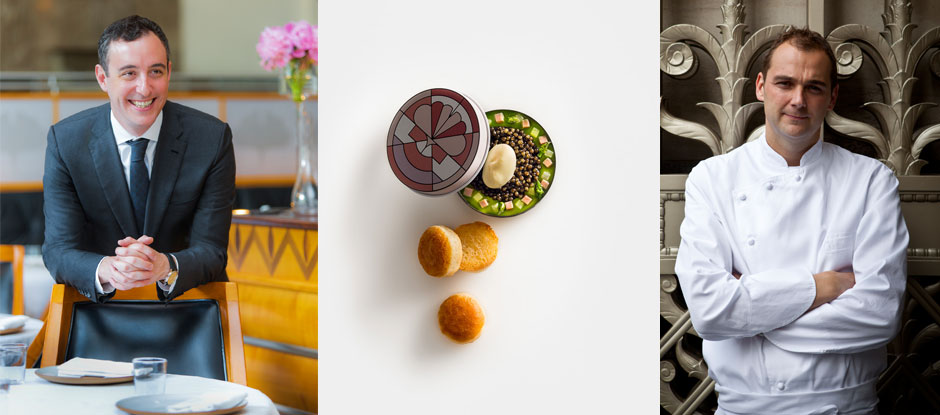 Header images: Will Guidara (left), Daniel Humm (right), eggs benedict with ham and asparagus