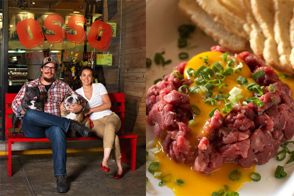 Garibaldi with his wife Andrea; wagyu tartare at Osso