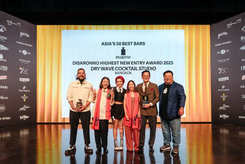 Super-cool Bangkok newcomer Dry Wave Cocktail Studio secured the Disaronno Highest New Entry Award 2025.
