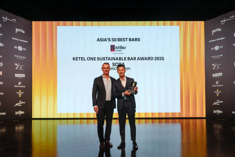 ... and continuing with this year's winner of the Ketel One Sustainable Bar Award: new entry Sora in Phnom Penh, which took the No.65 spot in the extended ranking of Asia's 50 Best Bars 2025.