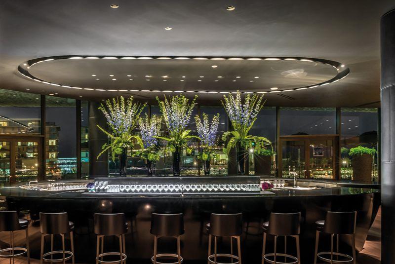 Located on the 79th floor of the Mandarin Oriental, MO Bar stands out for its panoramic urban views, as well as its alcohol-free cocktails, which are inspired by Chinese botany. Each of the menu's mocktails represents a solar term from the ancient Chinese agricultural calendar. Unique flavour profiles are achieved with ingredients such as smoked plum and hawthorn, found in the Crimson mocktail designed to capture the vibrancy of spring. Inside the industrial-themed space, deeply cushioned leather stools contrast with glossy marble bar tops, while wraparound windows gaze out onto the glinting Shenzhen skyline. Come by on a Friday or a Saturday evening to get the best view of the Futian light show, during which 1.18 million LED lights play mesmerising patterns across the Shenzhen cityscape.