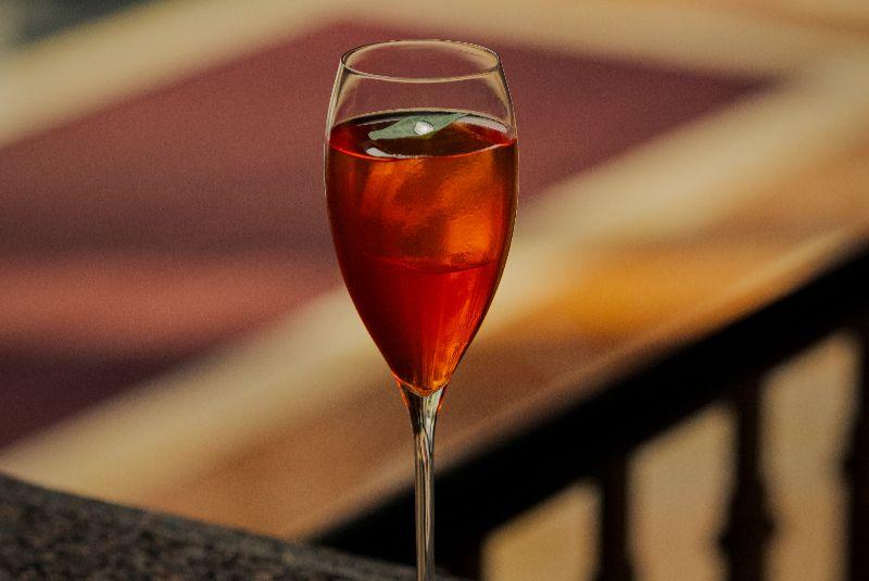The Miss Rouge is served over cracked ice in a champagne flute (Image: Glenn Chew)