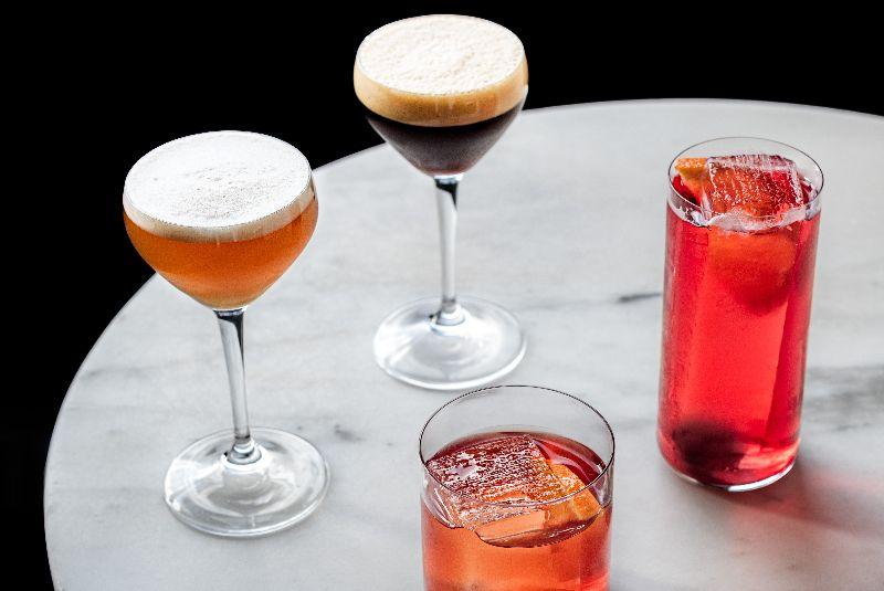 Four no-alcohol versions of bar classics are available, from left to right: negroni, whisky sour, americano and espresso martini (Image: Rebecca Dickinson)