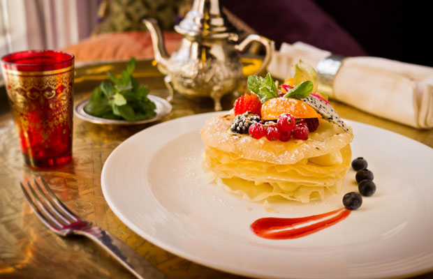 On the menu: Start with hot Moroccan bread with harissa and argan oil dips, before a cavalcade of fragrantly spiced mezze and mains are ferried to the table by fez-wearing waiters. Think lamb briouat or lamb and chickpea harira soup, followed by a filo pastilla stuffed with chicken and almonds or 'royale' couscous made with vegetables, chicken, lamb shoulder confit and beef merguez sausages.