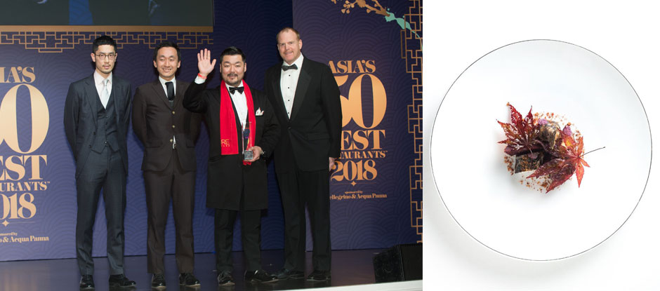 Takada receives the congratulations of his peers at the Asia's 50 Best Restaurants awards ceremony