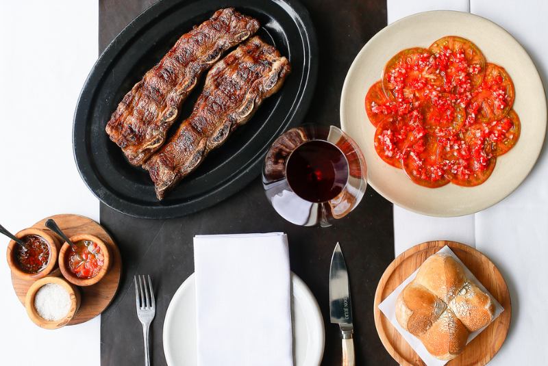 Dishes served at Don Julio: Roasted strip loin and criollo tomatoes