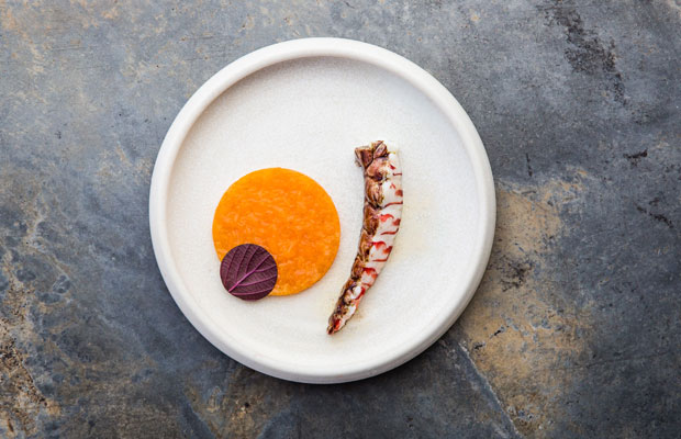 On the menu: There are two choices of prix fixe menus that are updated every four to five months. Standouts include a modern take on 'bak chor mee', a traditional yellow noodle made instead with thinly shaved squid cooked in a saffron broth, capturing the same bouncy bite and colour from the traditional noodle but with a whole new flavour. There’s also chilli crab, a national dish, this time made with a chilli ice cream served with fried soft-shell crab.