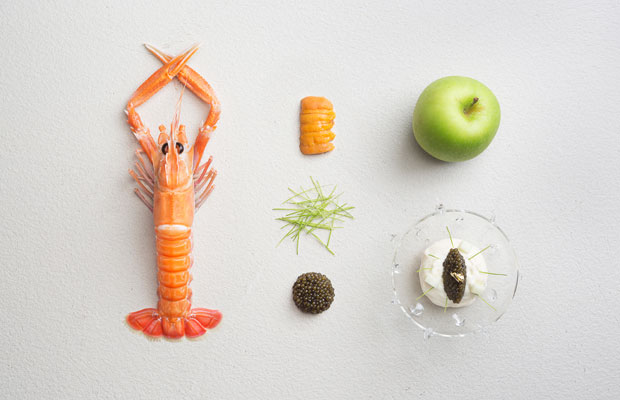 Hokkaido Uni - Mozambique langoustine tartare, mussel espuma, oscietra caviar, green apple at Odette (image: John Heng)