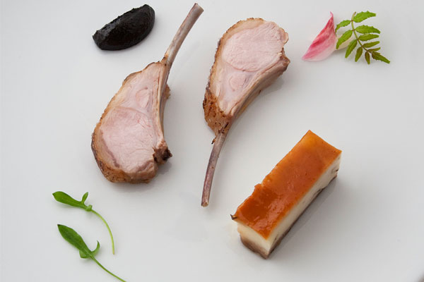 Suckling lamb, miso glazed eggplant and black curry paste at L'Astrance