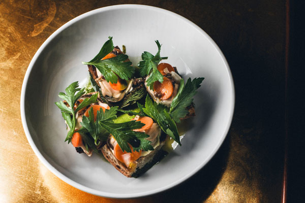 Chef-owner David Pynt counts Asador Etxebarri chef Victor Arguinzoniz among his mentors and, like the Basque master griller, sees in the coals the potential to bring out the best in all kinds of ingredients, be they fish, fowl or vegetable. Diners will find on the menu marrons (langoustines) from Pynt’s native Western Australia, sweet and juicy with accents of tobiko and an umami-rich kombu beurre blanc. Fennel, charred on the outside and lush within, paired with orange and burrata, is also something of a signature.