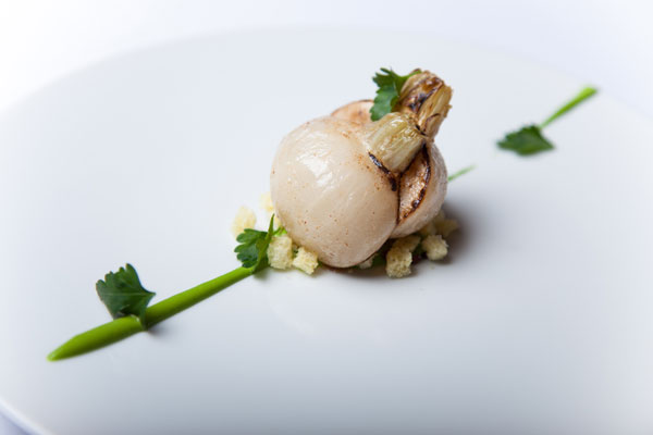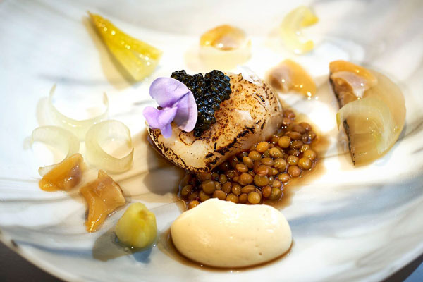 Hand-dived scallops, lentils, caviar and cauliflower at Vendôme