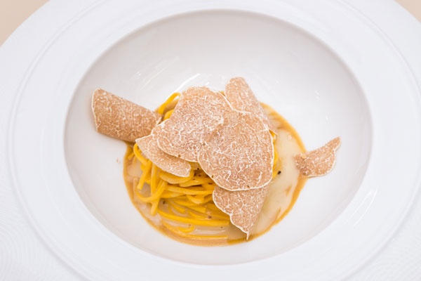 Homemade tagliolini with mushroom jus and Alba white truffle at 8 1/2 Otto e Mezzo Bombana