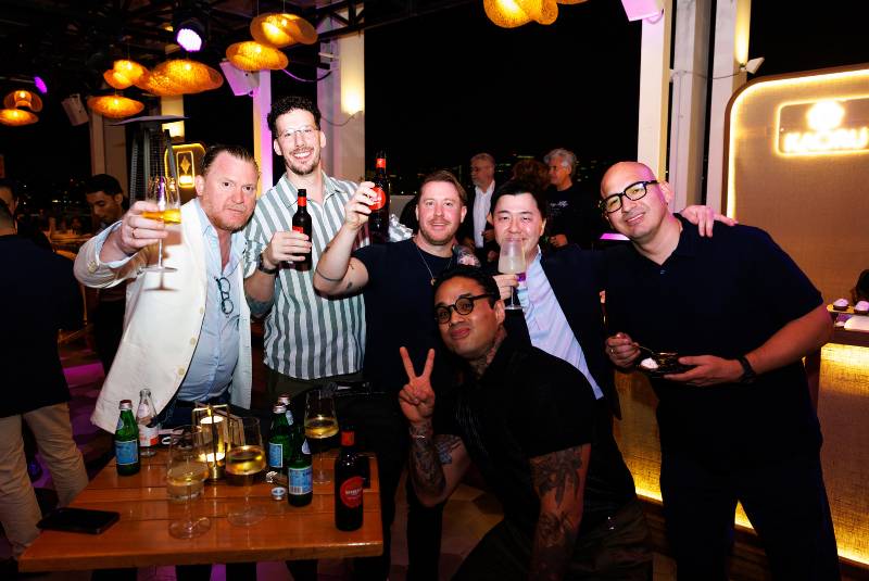 The teams from Myazu and Kuuru restaurants enjoy themselves the night ahead of the awards ceremony