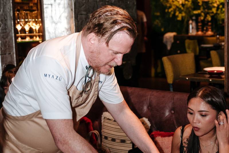 Chef Mitsuharu 'Micha' Tsumura treats guests with a peek into the skills behind his world-class cooking