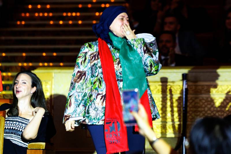Pioneering Palestinian chef Salam Dakkak stands to collect the Sevenrooms Icon Award 2026