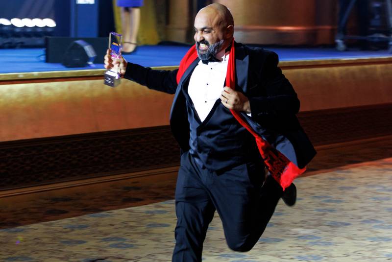 Khufu's executive chef, Mostafa Seif, sprints to the stage after the news is announced