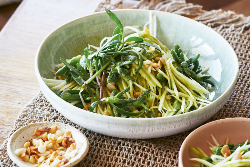 A salad made with green mango and karkalla, an edible succulent that also acts as an anti-inflammatory