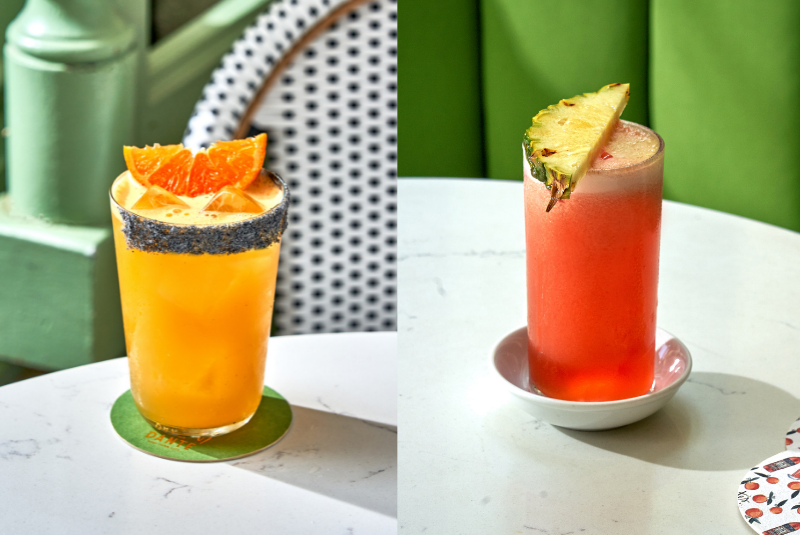Two signature cocktails from Dante, which was named The World's Best Bar 2019: Fluffy Margarita Royale and Golden Garibaldi