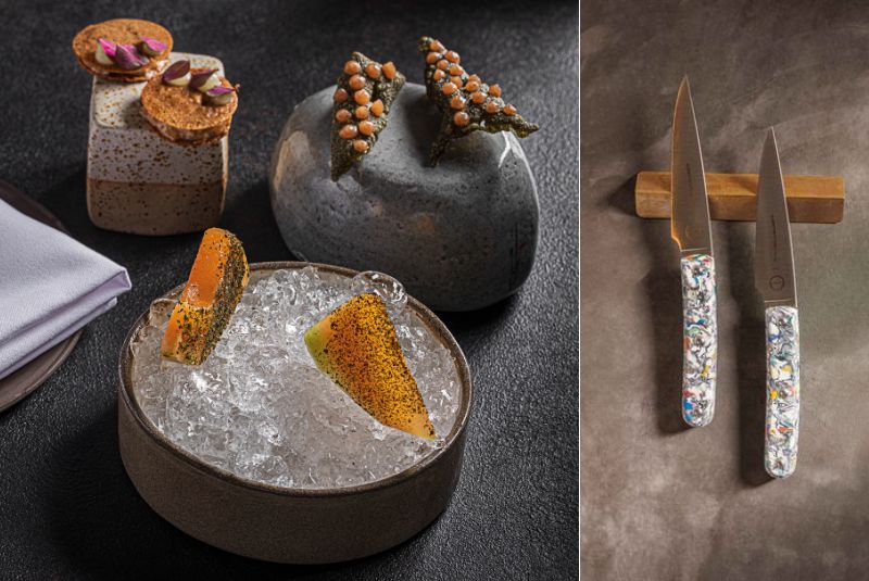Some of OCD’s serving plates and knives are the result of an upcycling process