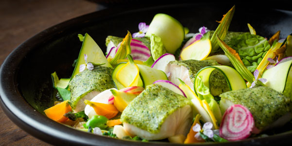 A carefully arranged wooden board dressed with patches of moss and any number of small, umami-laced dishes – typically around six to eight per guest – teases a taste of Northern California’s seasonality and serves as the first welcoming course at SingleThread. The display is rooted in kaiseki, and the cuisine’s myriad tiny, intricate dishes centered on seasonal products treated to heighten ingredients’ natural flavour.