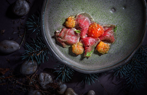 What's on the menu? Modern and traditional cooking techniques are the hallmark of dishes such as dried beef shoulder accompanied by sweet and tart tomato hearts or turbot cooked sous vide at 48oC and drizzled with a sauce made from chicken hearts. Finish with 'edge of the forest,' a visually stunning creation comprising moss, sugar syrup, chocolate and raspberry.