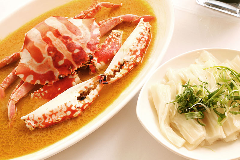“Some crabs are saltier, others are sweeter. We try each one very carefully and we balance the salt with the chicken oil and the wine. Each dish is tailor-made – there is no formula. That’s why it’s the simplest, but also the hardest dish to make. It’s only made of three ingredients, but it’s very difficult to make the proper link between them. You have to improvise every single time,” he says.