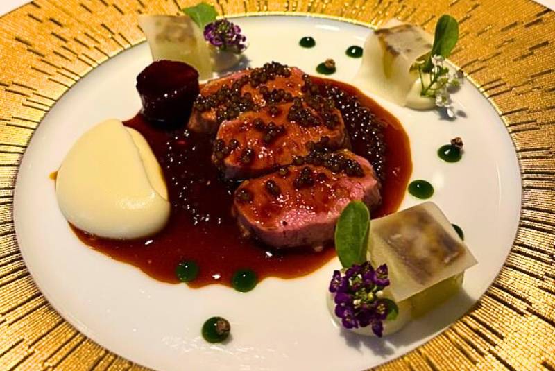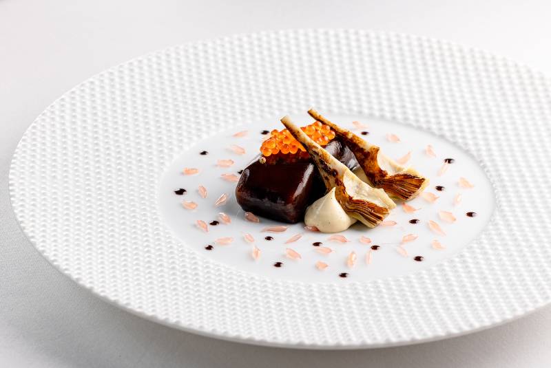 The original version of this dish debuted on The Fat Duck menu in 2005, but it's been brought back recently, albeit in an evolved form. Blumenthal explains that each cooking process alters the character of food, bringing out different textures and flavours. The possibilities from a single ingredient are numerous, which is a reminder of just how much there is to explore. On the plate is loin of lamb, crisp lamb arlettes (a puff pastry crisp, similar to a palmier), smoked caviar, cucumber, celtuce, green peppercorn, caraway and mint, with a side serving of ice-filtered lamb jelly with a mint emulsion.