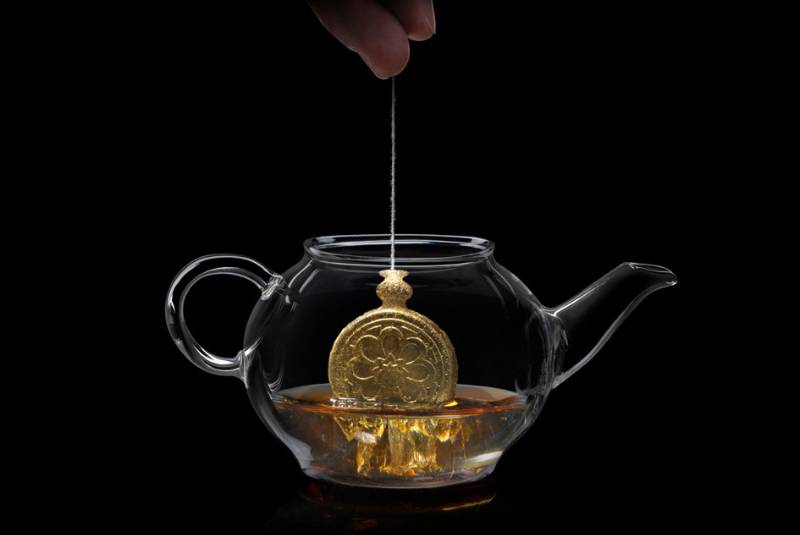 Victorians loved to eat turtle soup, but it fell out of favour for cost reasons and was replaced with mock turtle soup, made with calf's head and foot and root vegetables. Blumenthal explains that is why the Mock Turtle character in the illustrations of Alice's Adventures in Wonderland also had a calf's head and feet. The book served as a source of inspiration for the dish. As the Mad Hatter dunks his watch in the tea, The Fat Duck followed, creating a fob watch from stock which was freeze dried, reduced and concentrated by cold (ice-filtration technique, pioneered by Blumenthal), before being wrapped in gold leaf. The dish was served with a teapot: when diners poured hot water onto the 'watch', it dissolved into a crystal-clear consommé with gold leaf. This was served with a Mock Turtle egg – a turnip mousse with swede purée and enoki mushrooms.